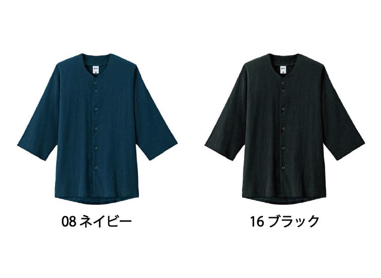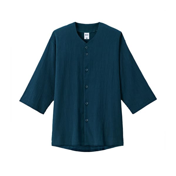 楊柳素材特有の細かな凹凸(しぼ)が肌への張り付きを抑え、さらりと涼しい着心地を実現した五分袖シャツ。