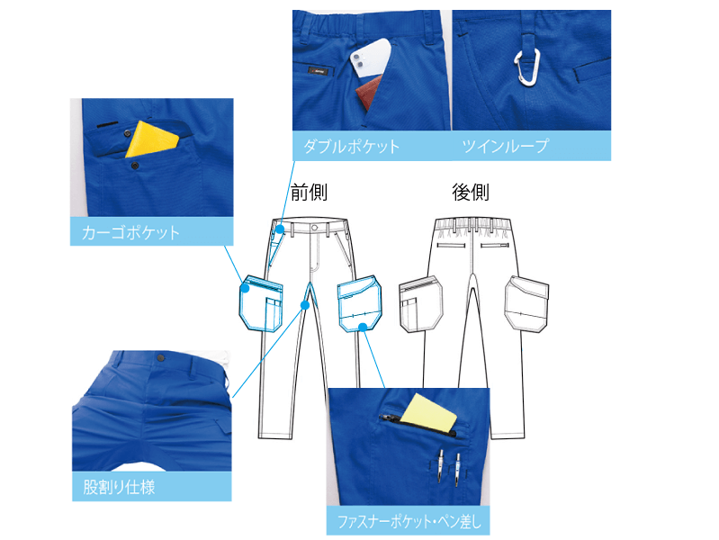 通気性が良く、春夏用のワーキングパンツとしてぴったりです。