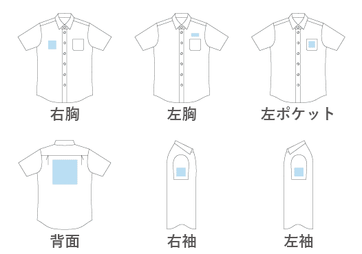 - 胸ポケット:W4.5×H5cm または 背面:W30×H30cm